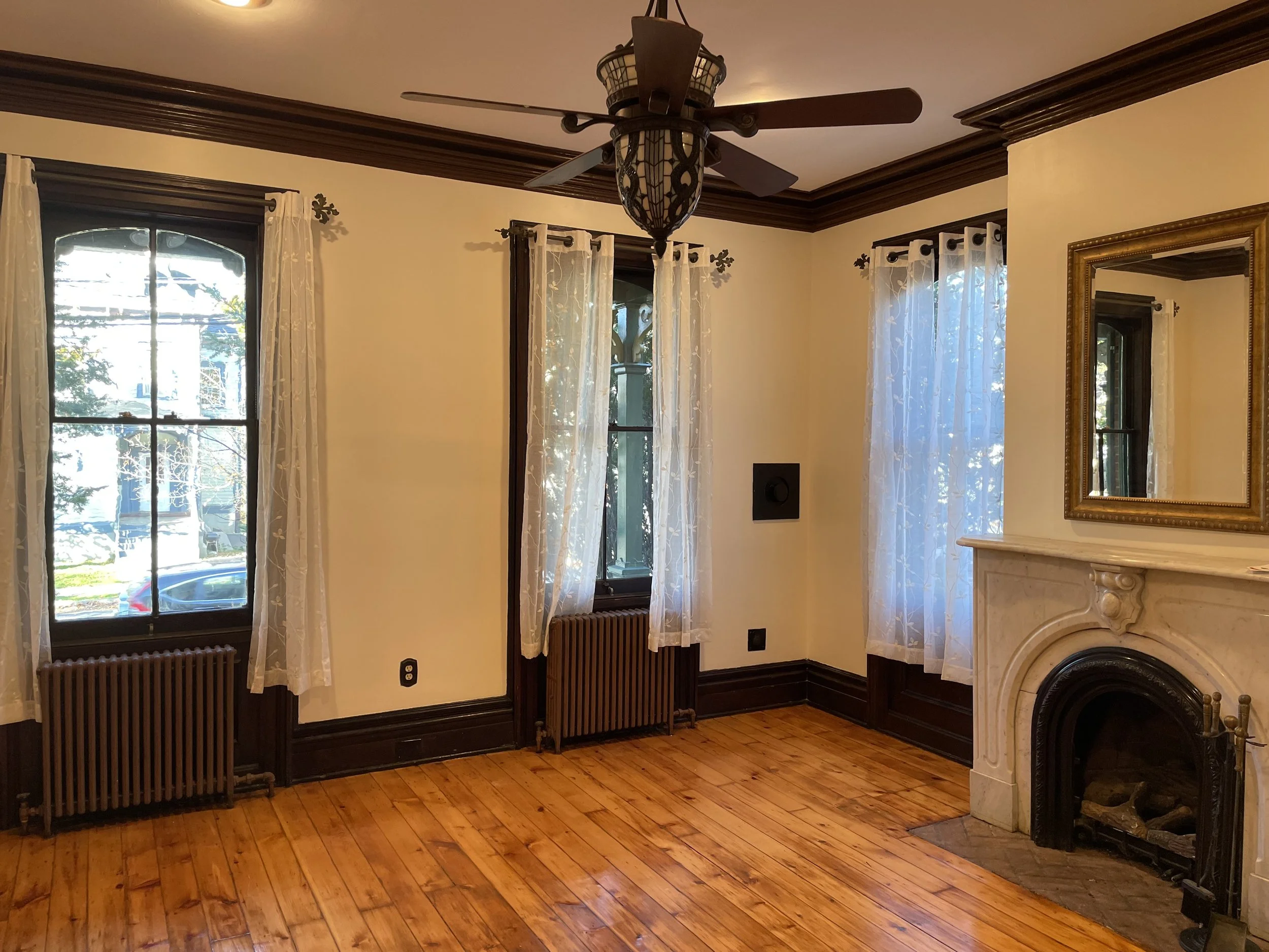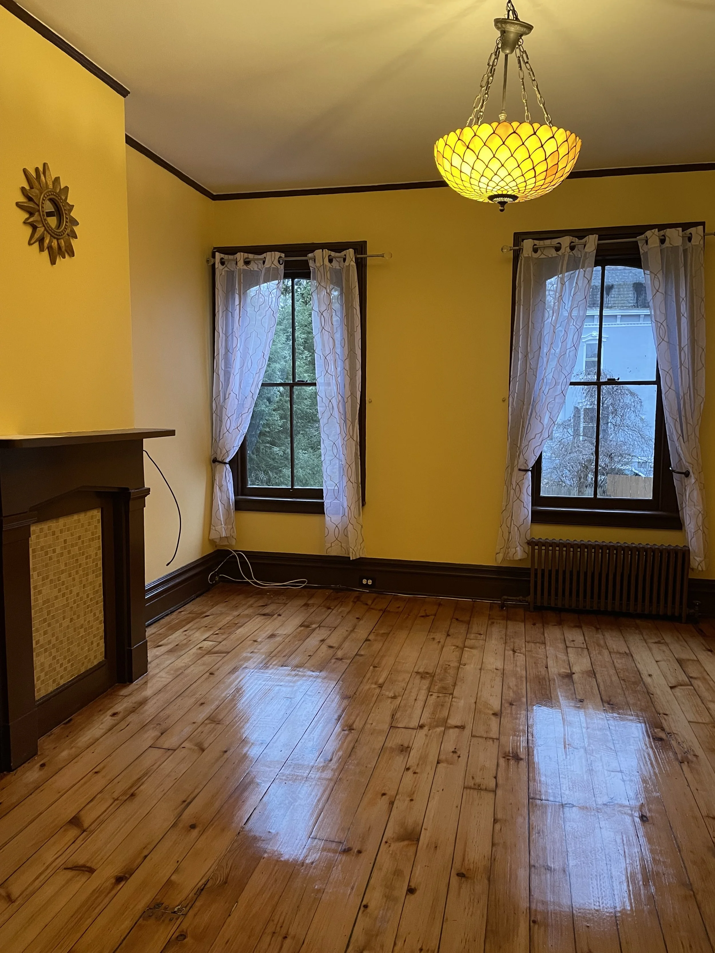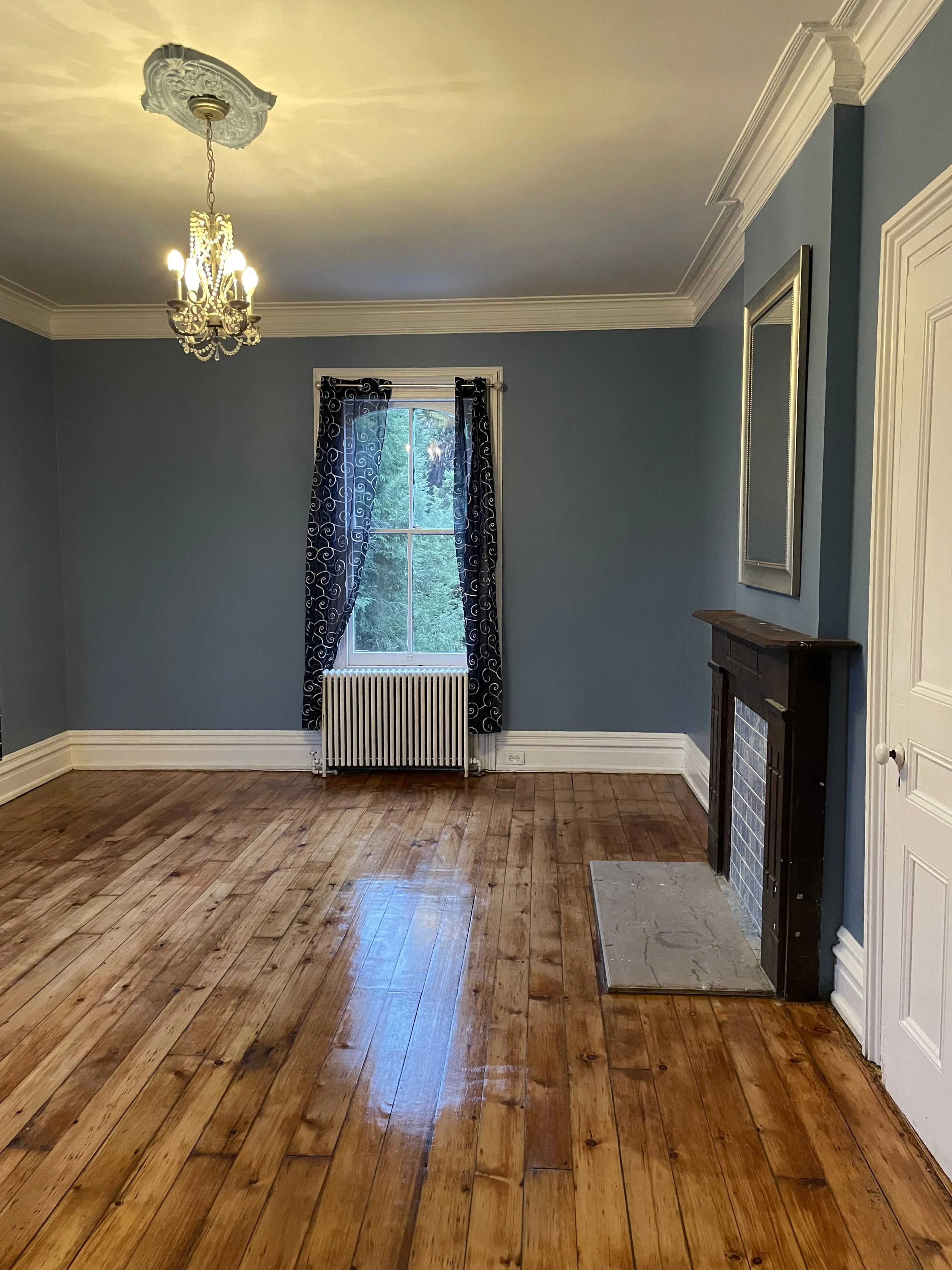 We moved into this historic brick beauty at the end of 2022 after the unexpected sale of the Delhi property. It is protected within Poughkeepsie’s historic district so luckily its handsome facade, porches and slate Mansard roof had been preserved. The previous owner had used it as a rental property for a few decades, though, so the interior felt generic and very out of place and had been painted in all sorts of unfortunate shades. We had all intentions of making this our family home for a while to come. With lots of space to spread out, the downstairs living and dining rooms were made into Tim’s state of the art music studio and we began giving the rest of the house a facelift. But we soon realized a music studio inside a house, especially with a baby, was not going to work well in the long term… So after only about a year and a half in this dreamy Victorian, we sold it for a new old property with a conveniently detached garage that would make a much more suitable studio.